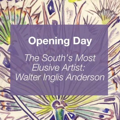 Join us for opening day of our new exhibit, The South’s Most Elusive Artist: Walter Inglis Anderson, featuring 40 pieces of art. Celebrate the release of the book, The Bicycle Logs of Walter Anderson, learn more about The Extraordinary Life and Art of the Islander through a documentary by Anthony Thaxton and Robert St. John; immerse yourself in Anderson’s world in an interactive boat trip to his beloved Horn Island; and travel to The MAX on bicycle, in the style of Anderson and his epic bike rides.
