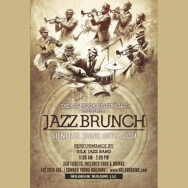 Prepare for a delightful Jazz brunch experience at the iconic Holbrook Building. The Silk Jazz and headlines the brunch, serenading you with smooth tunes while you indulge in a delectable spread catered by Pretty Presentations. Dress to impress and immerse yourself in the sophisticated ambiance. Your ticket includes VIP perks, granting you access to the exclusive VIP tent where you can unwind and enjoy a complimentary beverage along with other amenities. Take advantage of guided tours of The Holbrook, explore its limited-time historical art gallery, and learn about its journey to renovation. To top it off, each guest will receive a VIP gift as a token of appreciation.