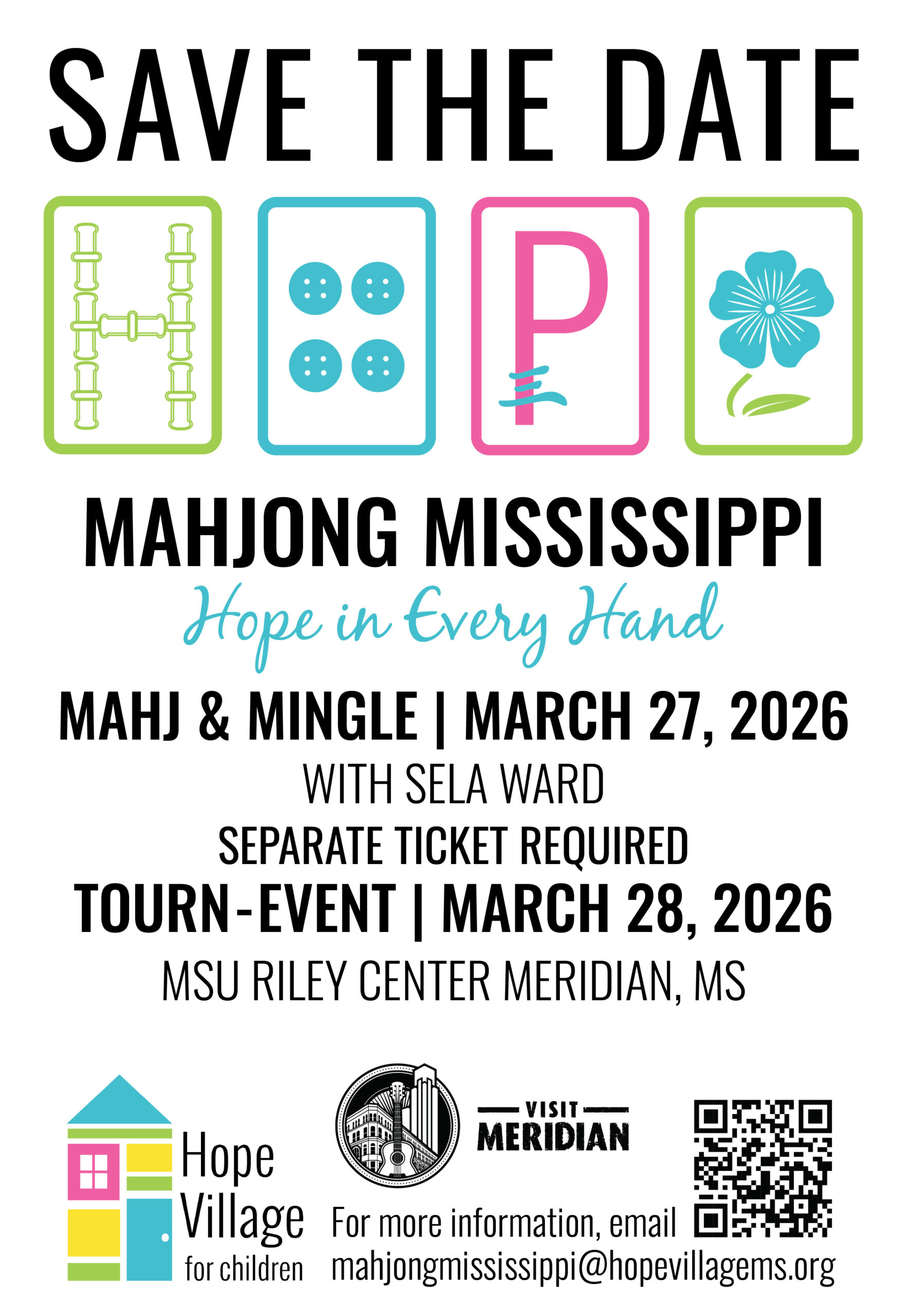 March 27–28, 2026 — The historic MSU Riley Center will come alive with excitement, community, and compassion as Mahjong enthusiasts from across Mississippi and beyond gather for the first annual Mahjong Mississippi Tourn-Event: Hope in Every Hand. This two-day experience combines the joy of the game with the powerful purpose of supporting Hope Village for Children, a refuge for some of the state’s most vulnerable youth.