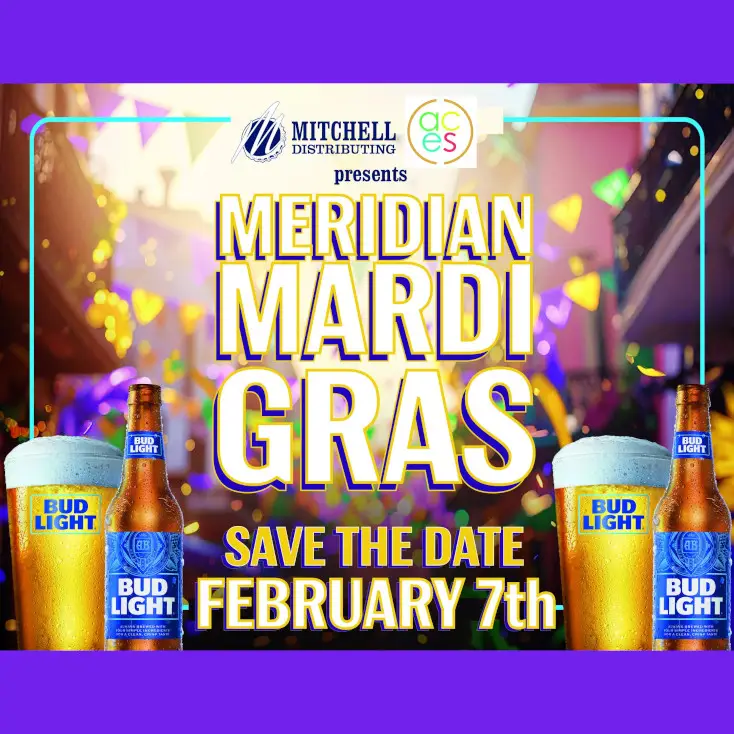Bud Light, Mitchell Distributing, and the ACES are proud to announce the 2026 Meridian Mardi Gras celebration, featuring festive parades, delicious food vendors, amazing bands, and MORE!