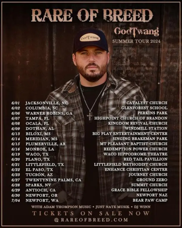 With a troubled past and a rough childhood filled with addiction, homelessness, and incarceration, artist Rare of Breed found the hope he needed to turn his broken life around when he started attending church and accepted Jesus as his savior. Now his life of faith shapes his music and his message. With a musical style he calls GodTwang, he blends Country and Christian music with Hip-Hop to create a sound that’s refreshing and unique. As part of his Summer Tour 2024, he will perform a free show at Singing Brakeman Park.
