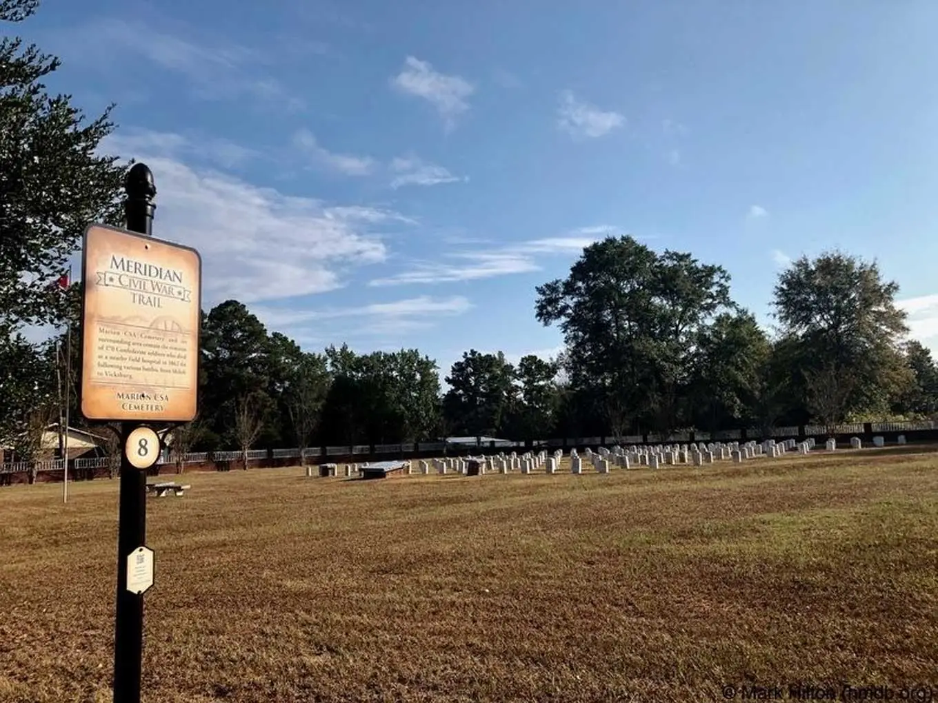 The Marion C.S.A. Cemetery honors 170 Confederate soldiers who died in the Civil War and is part of the Meridian Civil War Trail. Admission is free.
